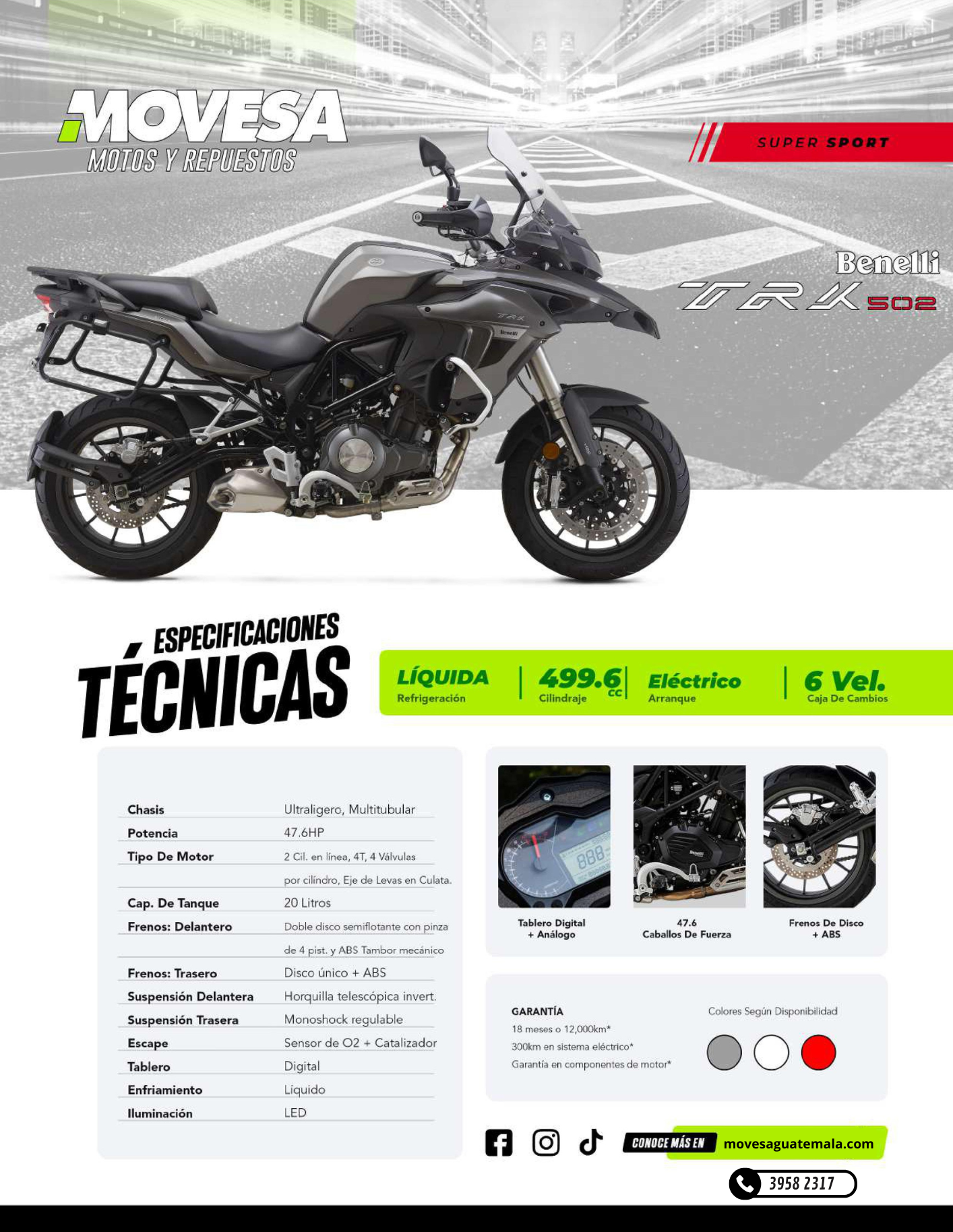 | Los precios en nuestra tienda en línea son precios con descuento incluido al contado. Todas nuestras motocicletas tienen descuentos en compras al contado, estrictamente en efectivo, transferencias o depósitos bancarios; compras en visa cuotas no aplican a descuento según políticas en: Políticas Movesa Guatemala |